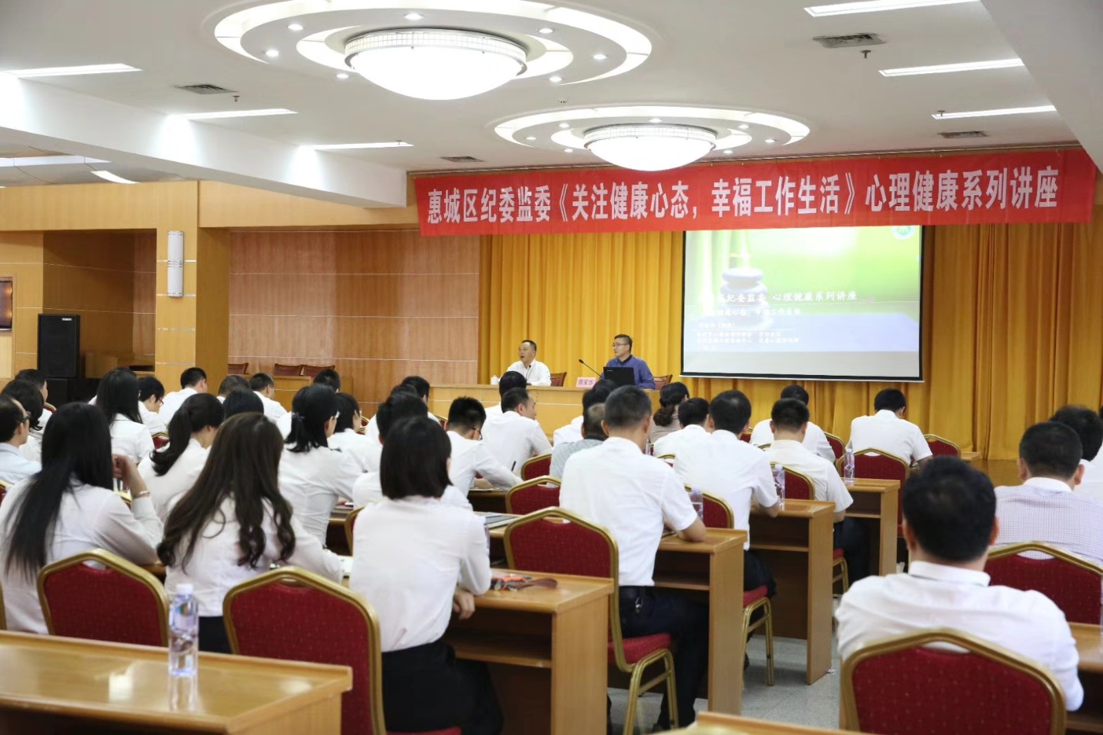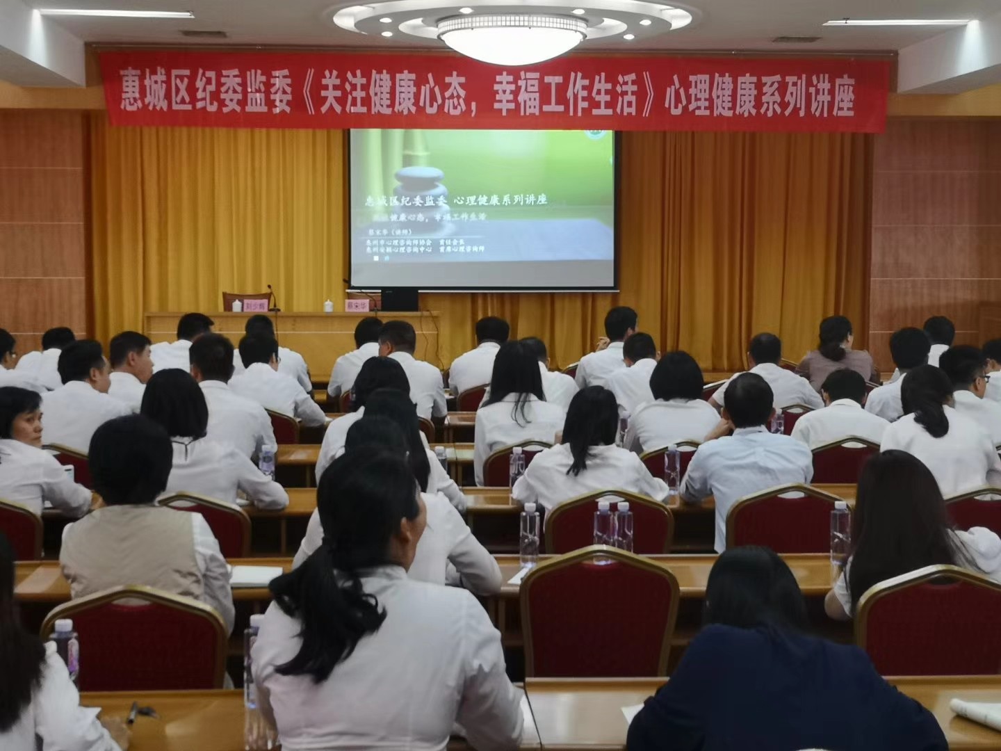 為進(jìn)一步提高紀(jì)檢監(jiān)察系統(tǒng)人員對心理健康的認(rèn)知水平,正確對待并釋放壓力,11月16日,惠城區(qū)舉辦紀(jì)檢監(jiān)察系統(tǒng)心理健康專題講座,邀請安穎心理首席咨詢師、國家二級心理咨詢師蔡宋華為惠城區(qū)紀(jì)委監(jiān)委全體干部職工進(jìn)行授課。